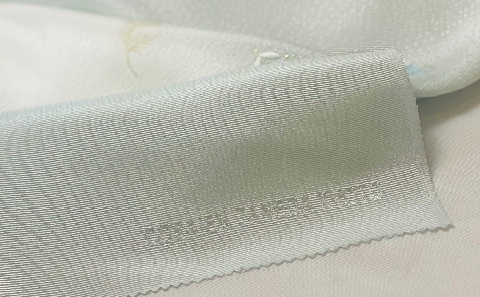 多工程にわたって製造される京かのこが最も映える独自の絹素材を京丹後地方で製織し帯あげに使用しております。