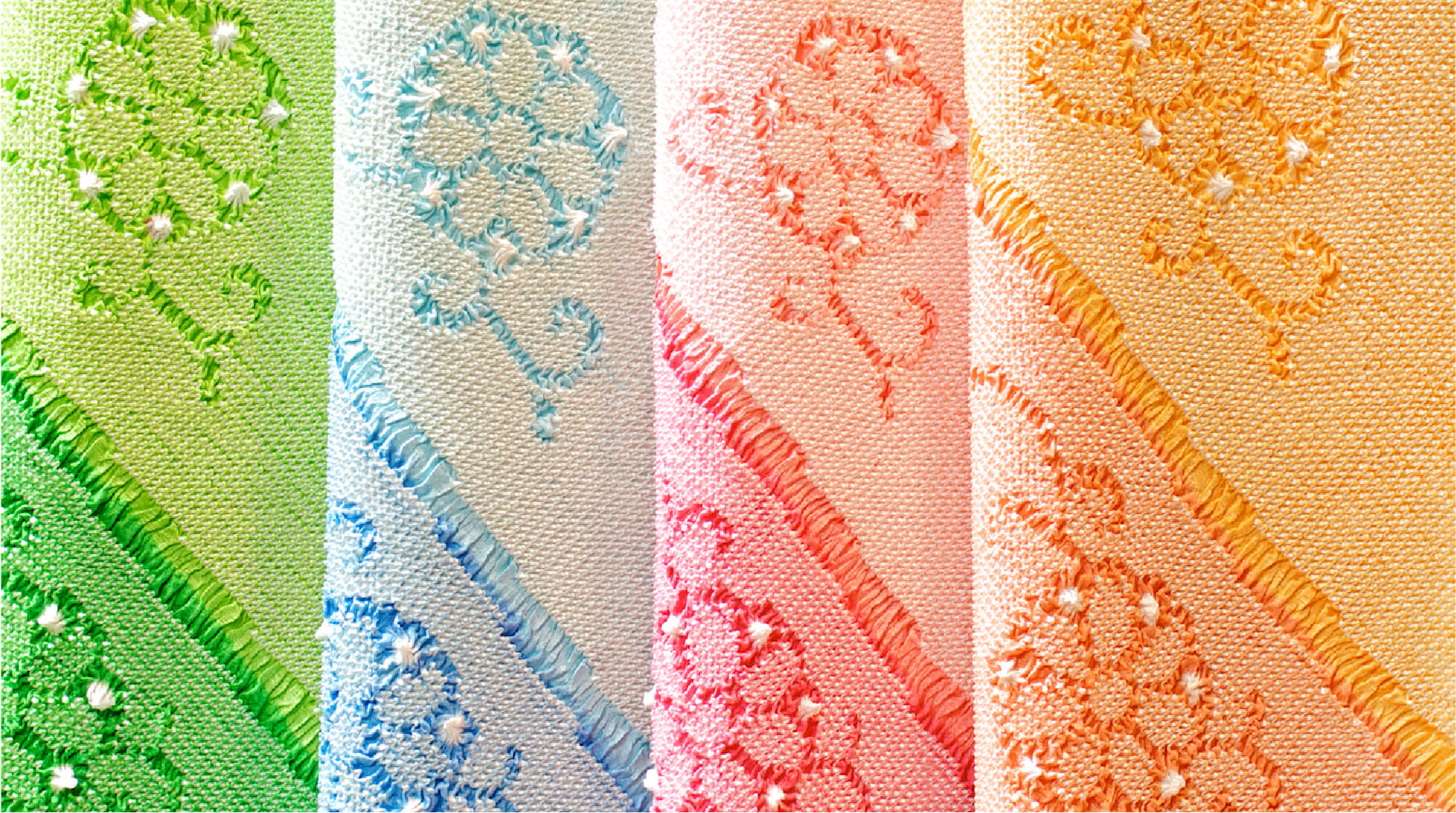 帯あげだからこそ求められる“上質な色” と“品のある立体感” を、伝統の技で丁寧に表現しています。
