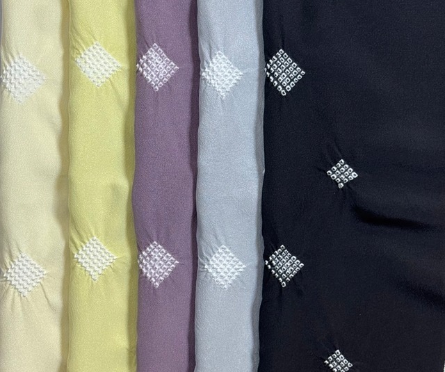 上質な丹後ちりめんを使用した疋田菱づくし京絞り帯あげは、おしゃれ着物にぴったりのアイテムです。吉祥文様の菱形を施した美しい絞りが特徴で、落ち着いた華やかさを一層引き立てます。 この帯あげは、合わせやすい5色のカラーバリエーションが魅力です。どんな着物とも相性が良く、コーディネートを格上げします。こだわりの技術で仕上げられた一品は、絹特有の上品な光沢と豊かな質感を持ち、使うたびにその魅力を実感いただけます。 ぜひこの素敵な帯あげで、おしゃれな着物スタイルをお楽しみくださいませ。 日本製 絹100%