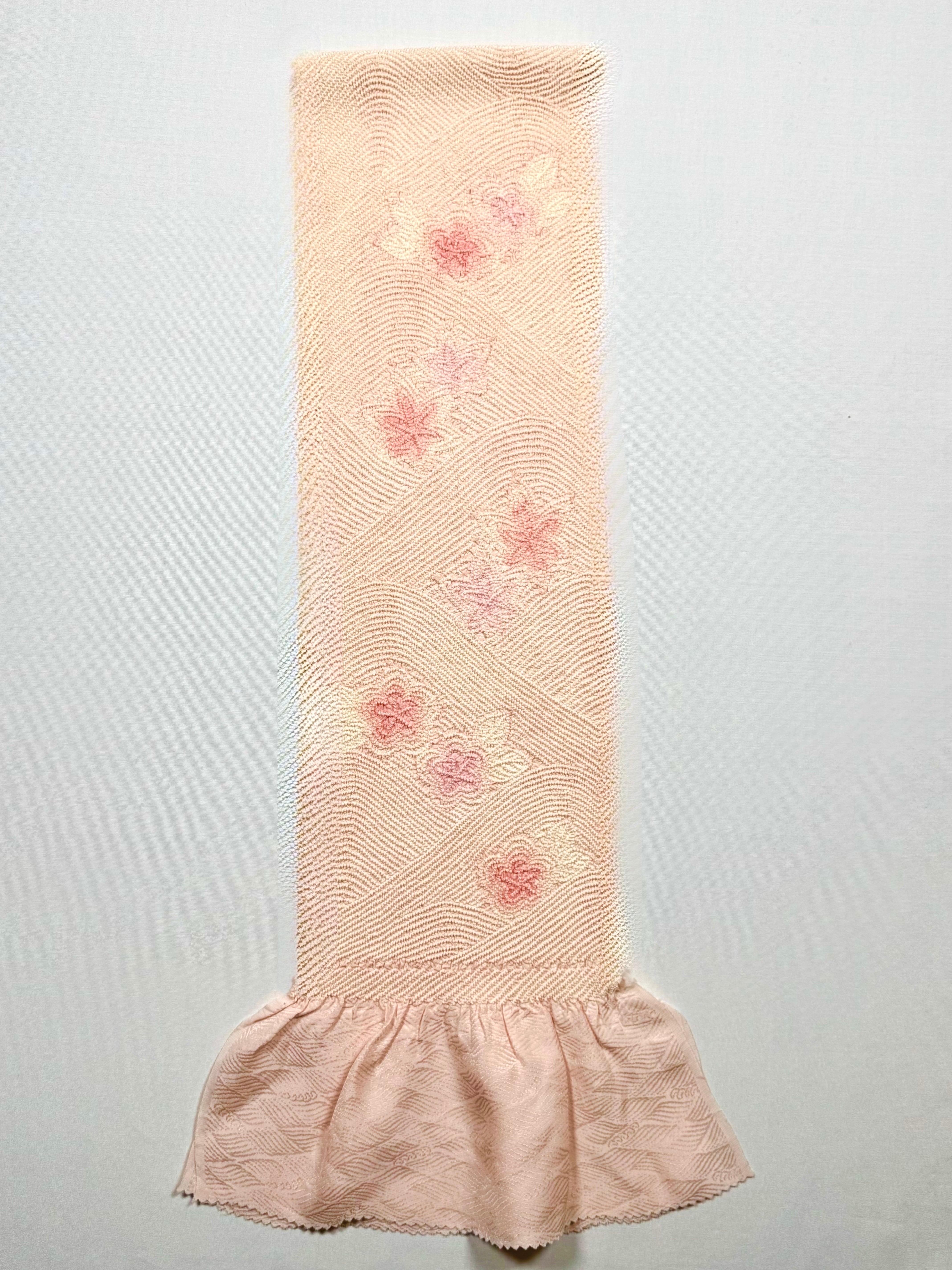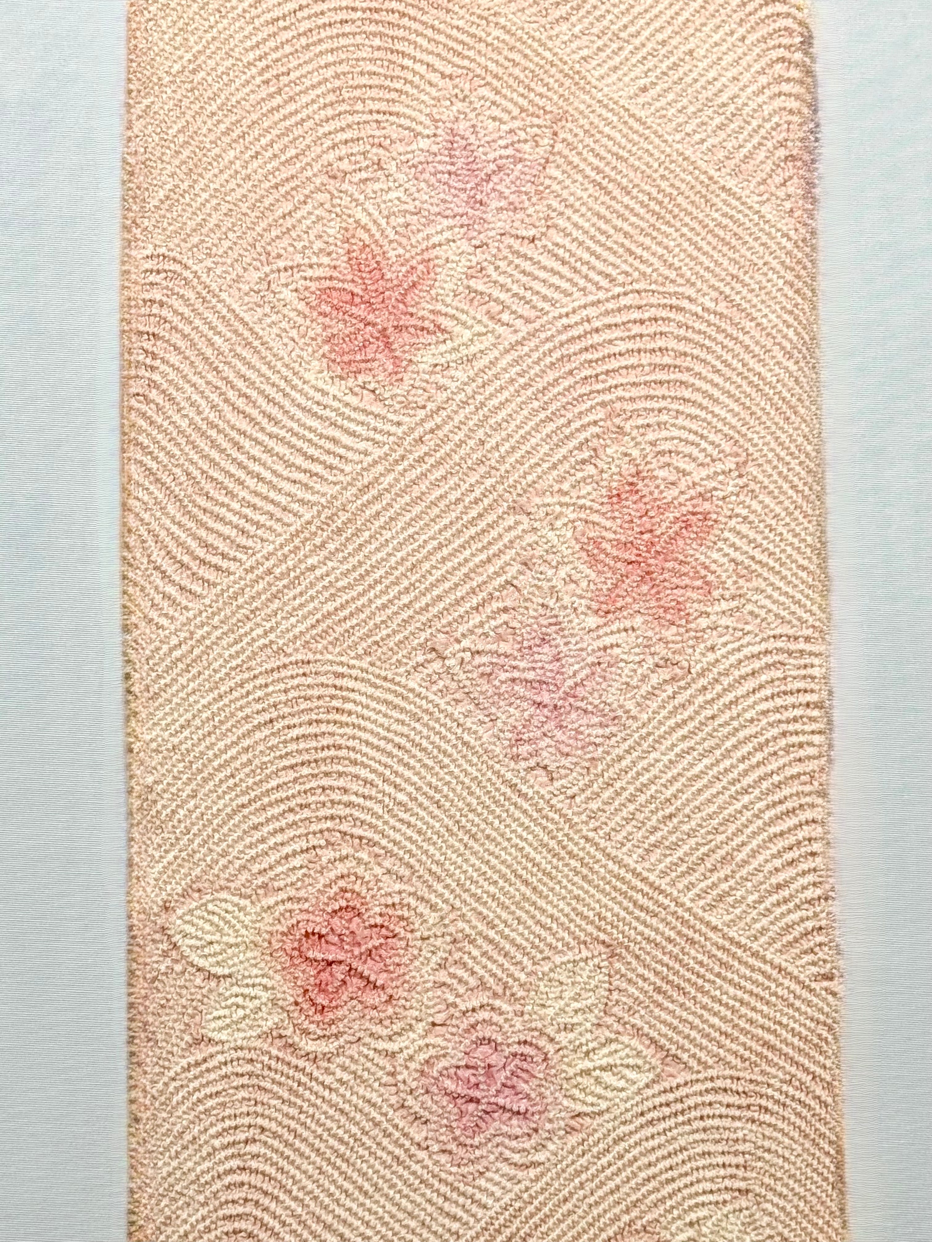 上品で趣のあるこちらの総絞り帯あげは、大波の中に梅と紅葉が舞い踊る美しいデザインを一粒一粒絞りで表現した逸品です。秋から春にかけての風情を感じる色合いとともに、伝統的な美しさを纏った一品です。上質な丹後ちりめんの絹素材を使用し、手仕事で丁寧に仕上げられたこの商品は、なめらかな質感と品のある光沢感が特徴です。 絹100%