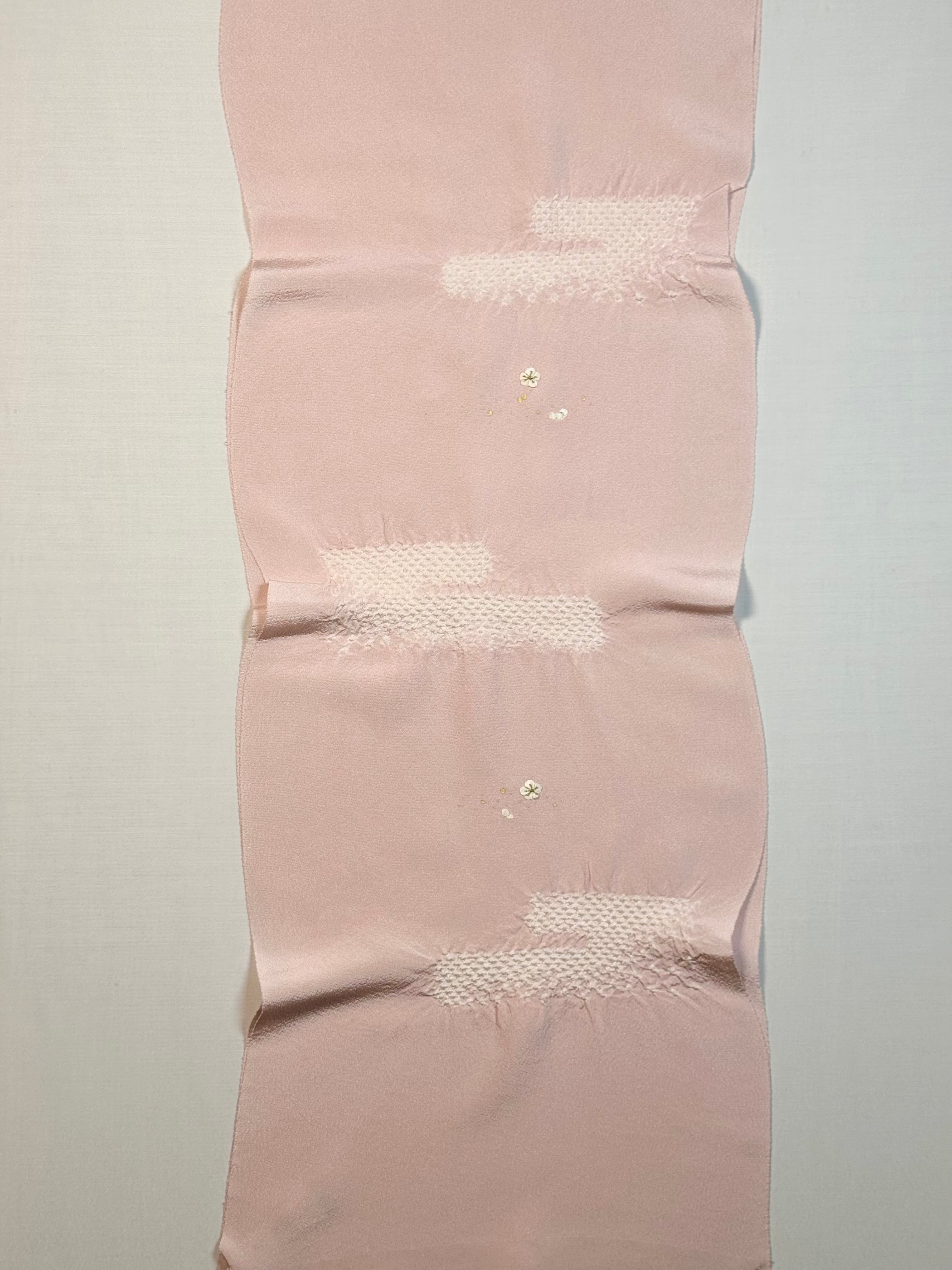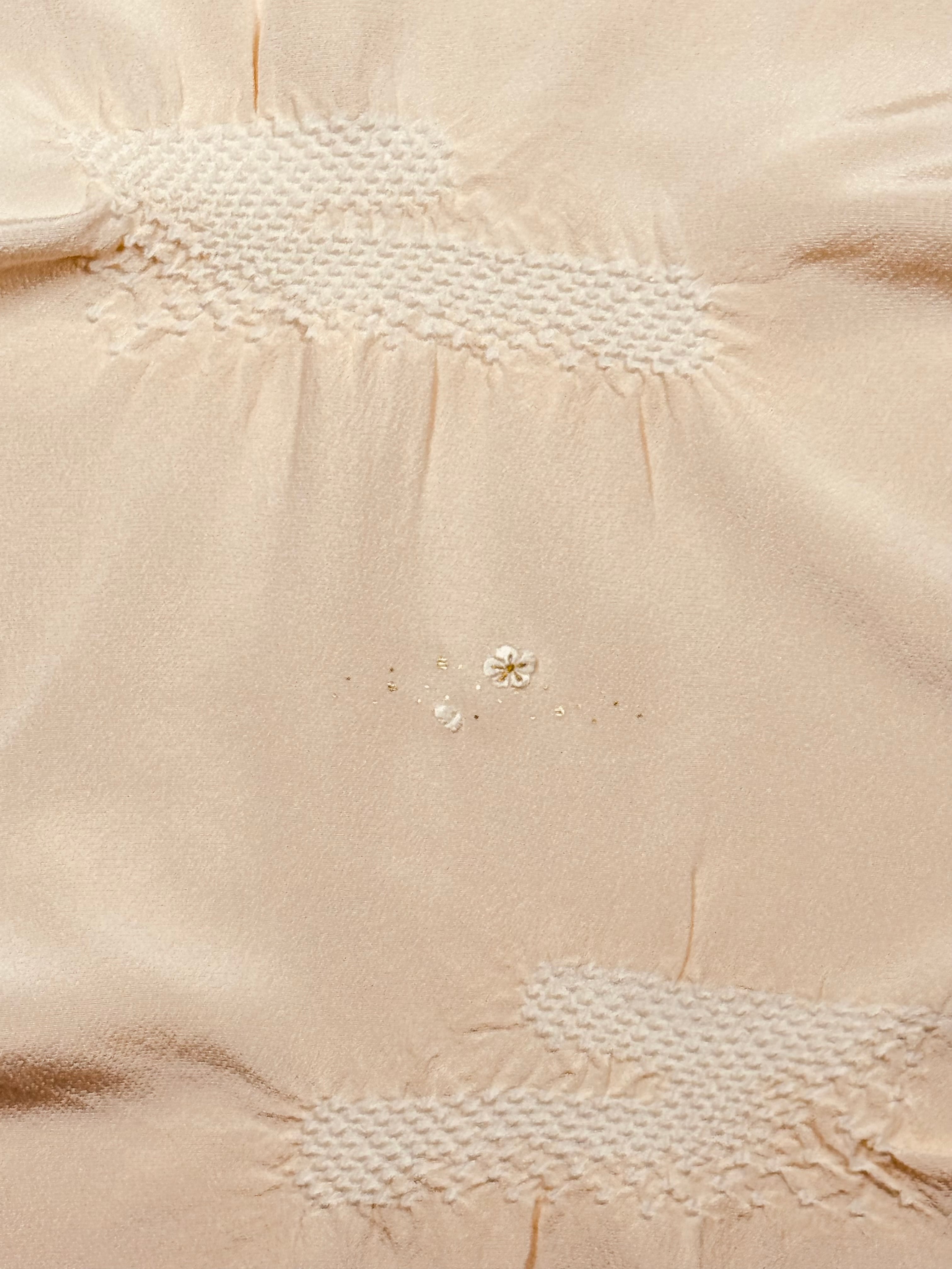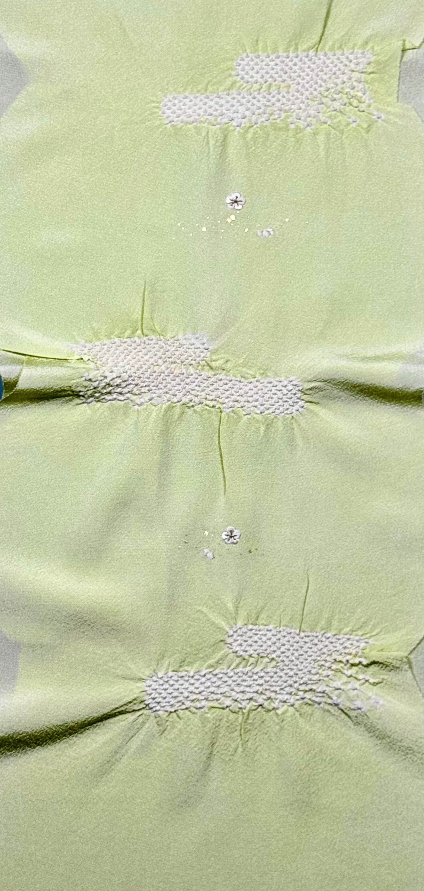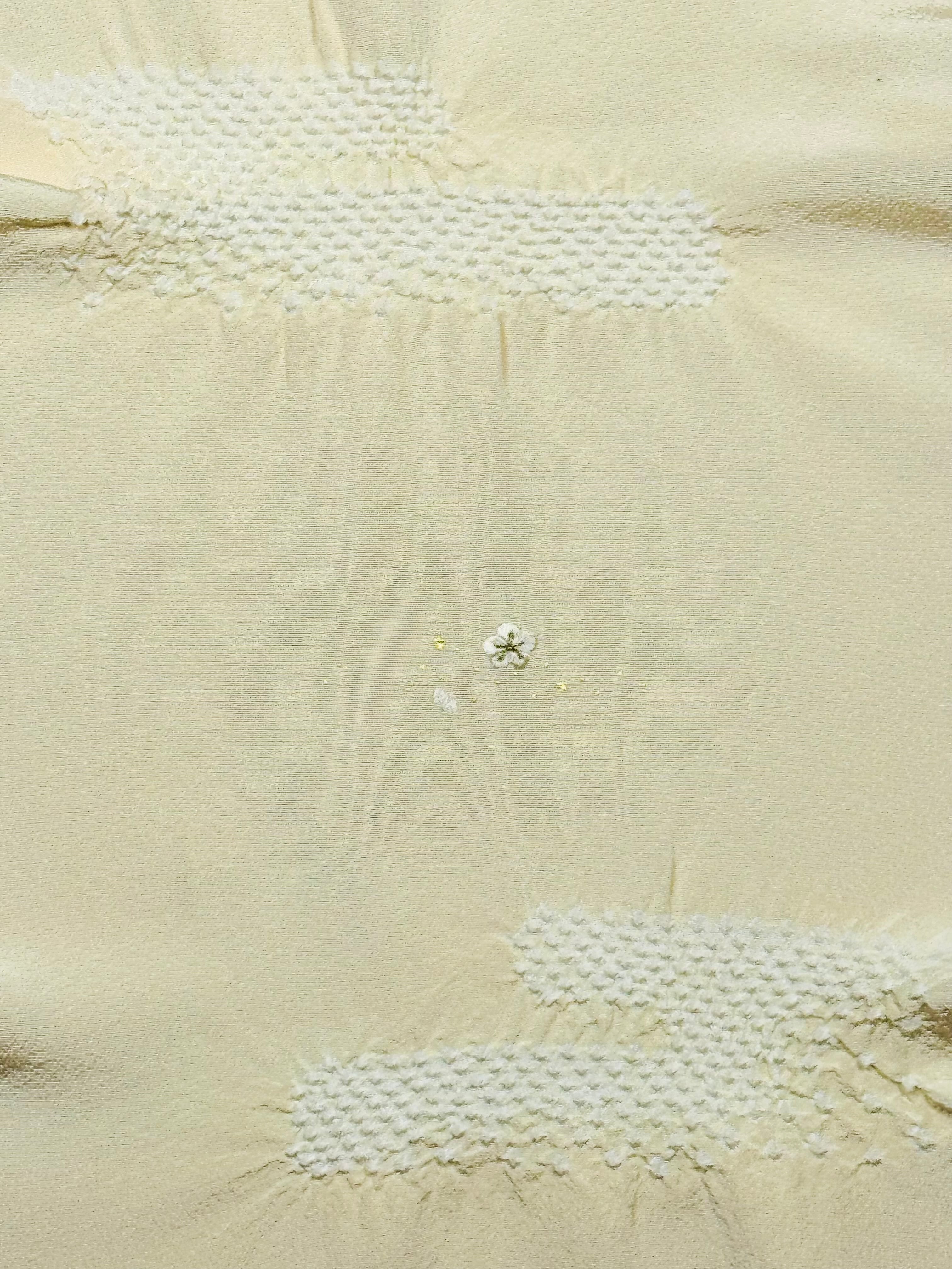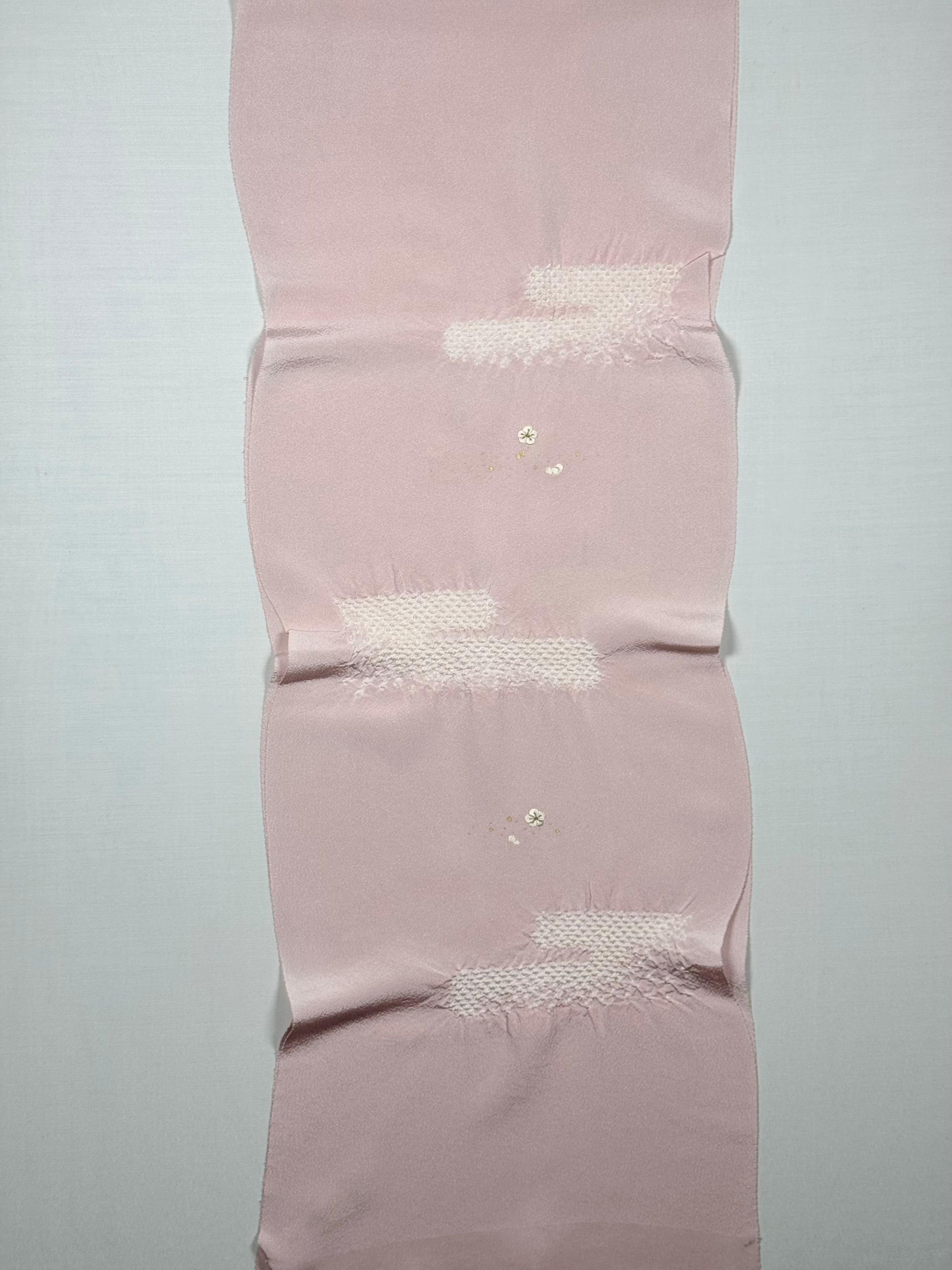 上品な光沢のある丹後ちりめんを使用し、日本古来の吉祥紋様のエ霞(えがすみ)を絞りでかたどった美しい帯あげです。絞りの配置によるぼかしの技法を効果的に用い、現れては消える霞がたなびく様子を表現しました。 美しい光沢感と繊細な小花の刺繍が魅力です。優雅で華やかなデザインながら、優しい絞りと落ち着きのある色合いが訪問着との相性抜群です。 卒業式や入学式などに参列されるお母さまの装いにおすすめです。 絹100% 日本製
