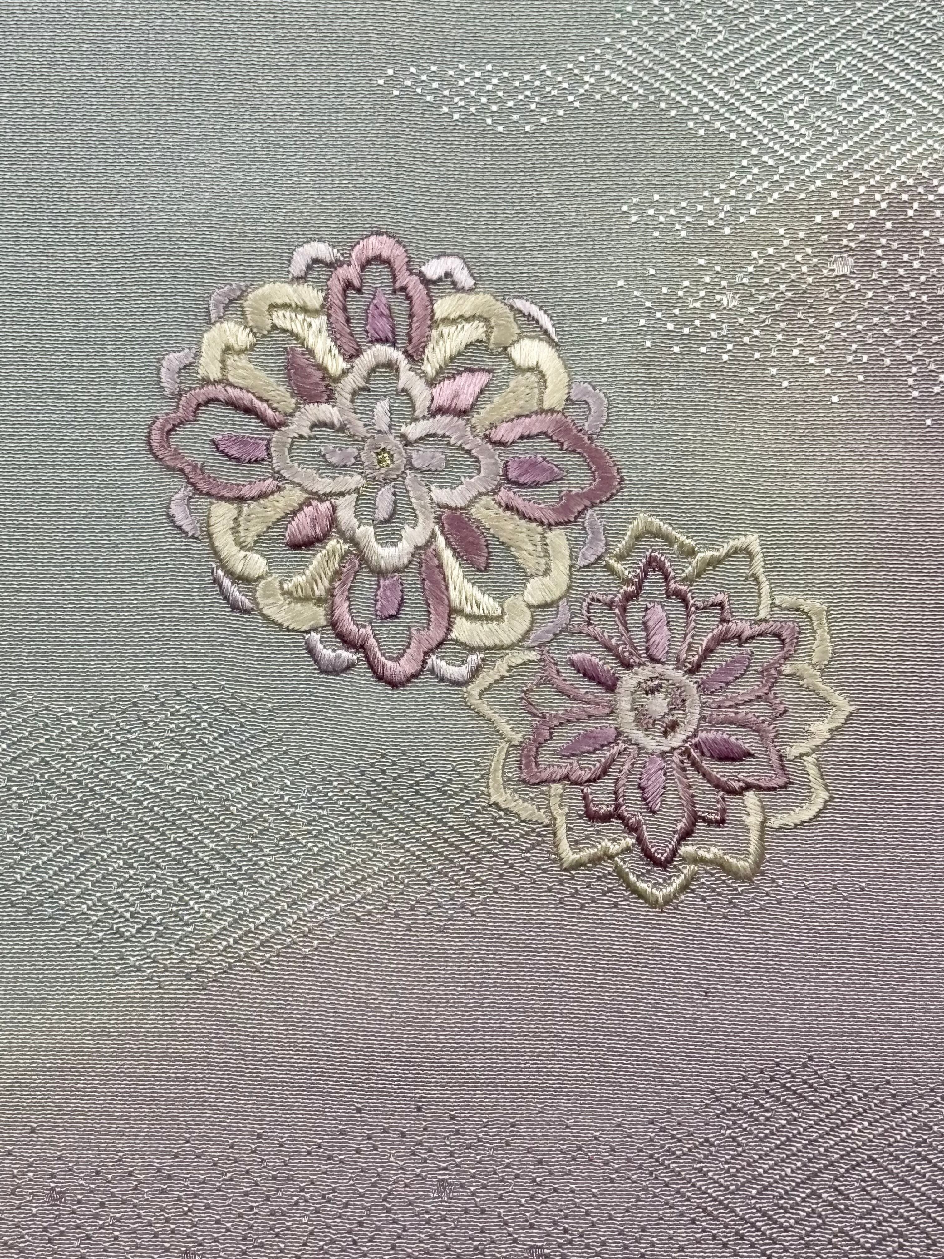 特に、着物で祝うお子様の卒業式や入学式など特別な日のお母さまの装いにふさわしい格の高い吉祥文様の華紋の刺繍は繁栄、長寿を象徴し、お慶びの日に最適です。