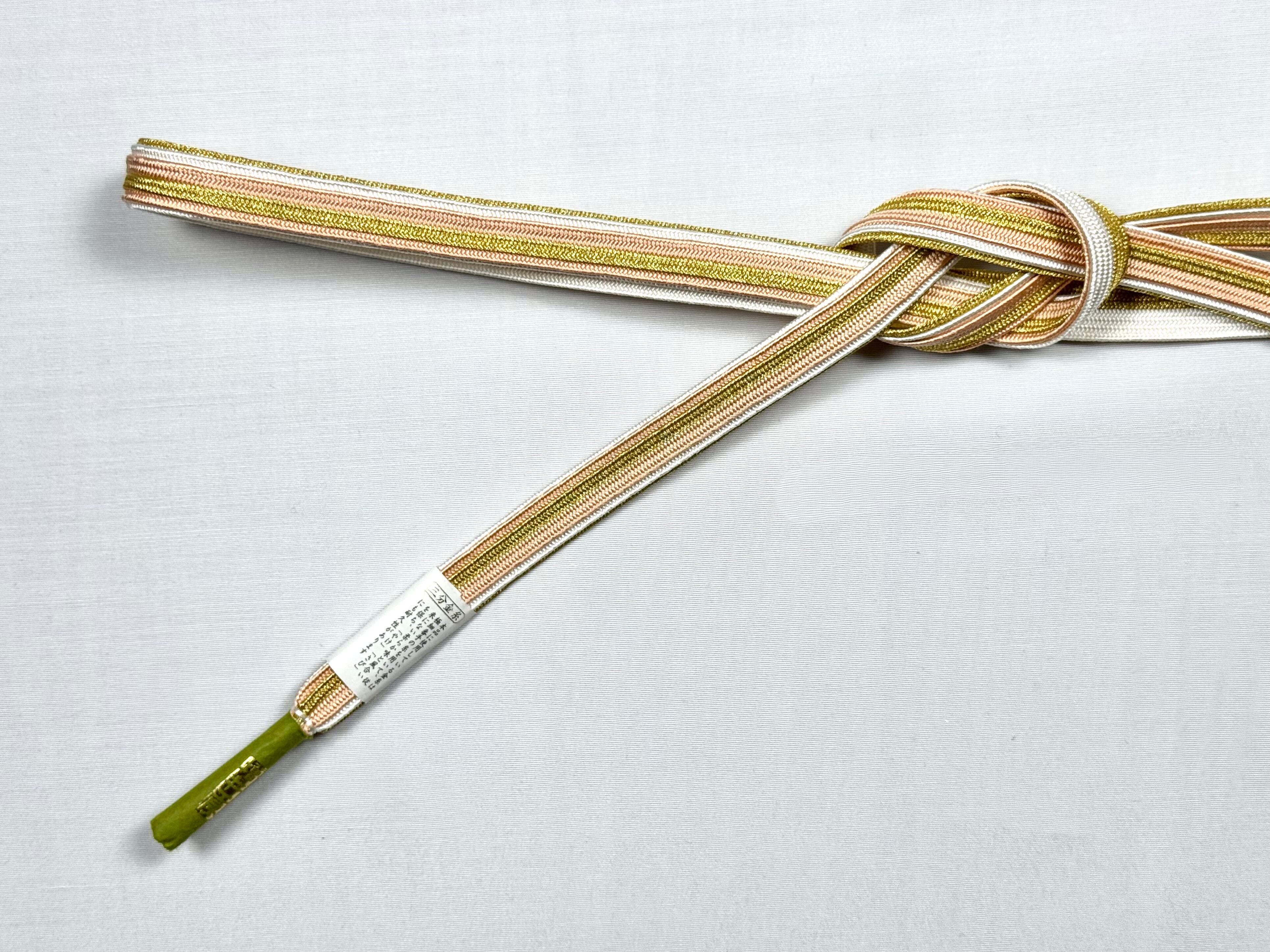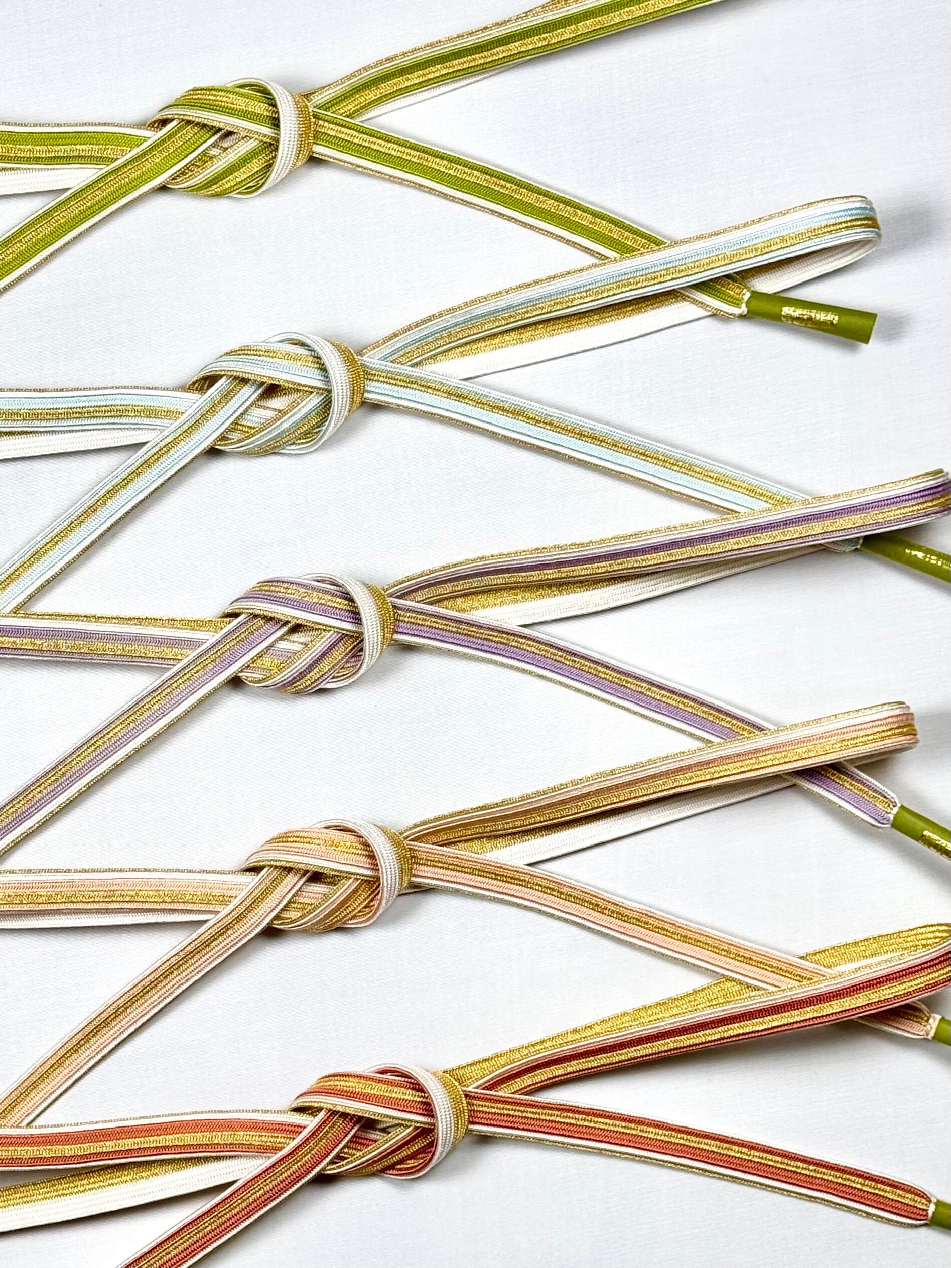 格調高い訪問着には、ぼかし染めの色合いと金色のコンビネーション柄の帯じめがおすすめです。コーディネートに華やかさと優しさを演出し、はれの日の装いを、より一層華やかに引き立ててくれます。 お好みのベルトをしてコーディネート全体を整えるように、訪問着に合わせやすいコンビカラーのバリエーションは全4色。お気に入りの振袖にぴったりのカラーをお選びいただけます。 「美しいキモノ」春号 沢口靖子さんの美しい着こなしです。 手組み 日本製 絹100%(金属糸を除く) サイズ:約1.8cm×約160cm