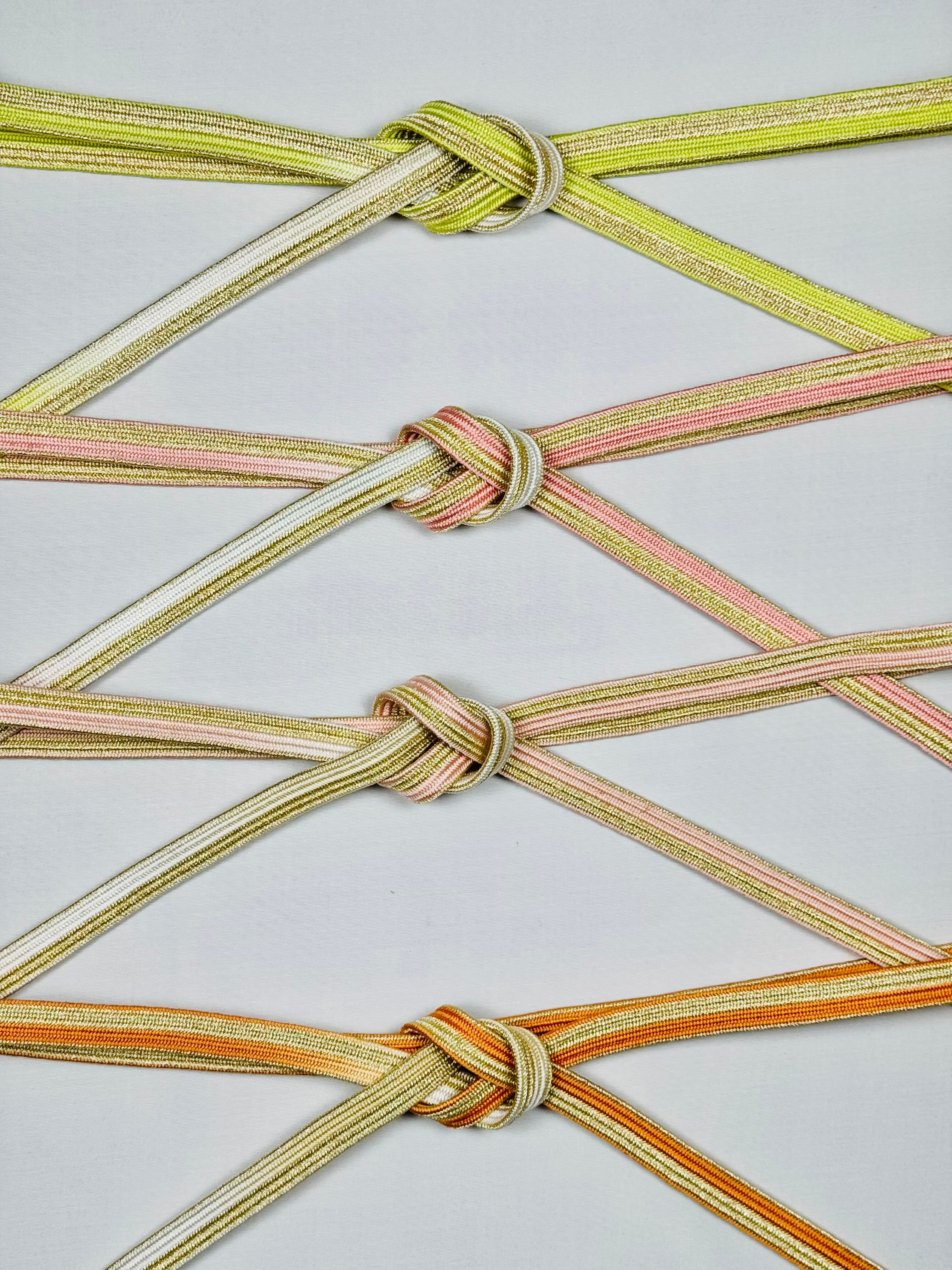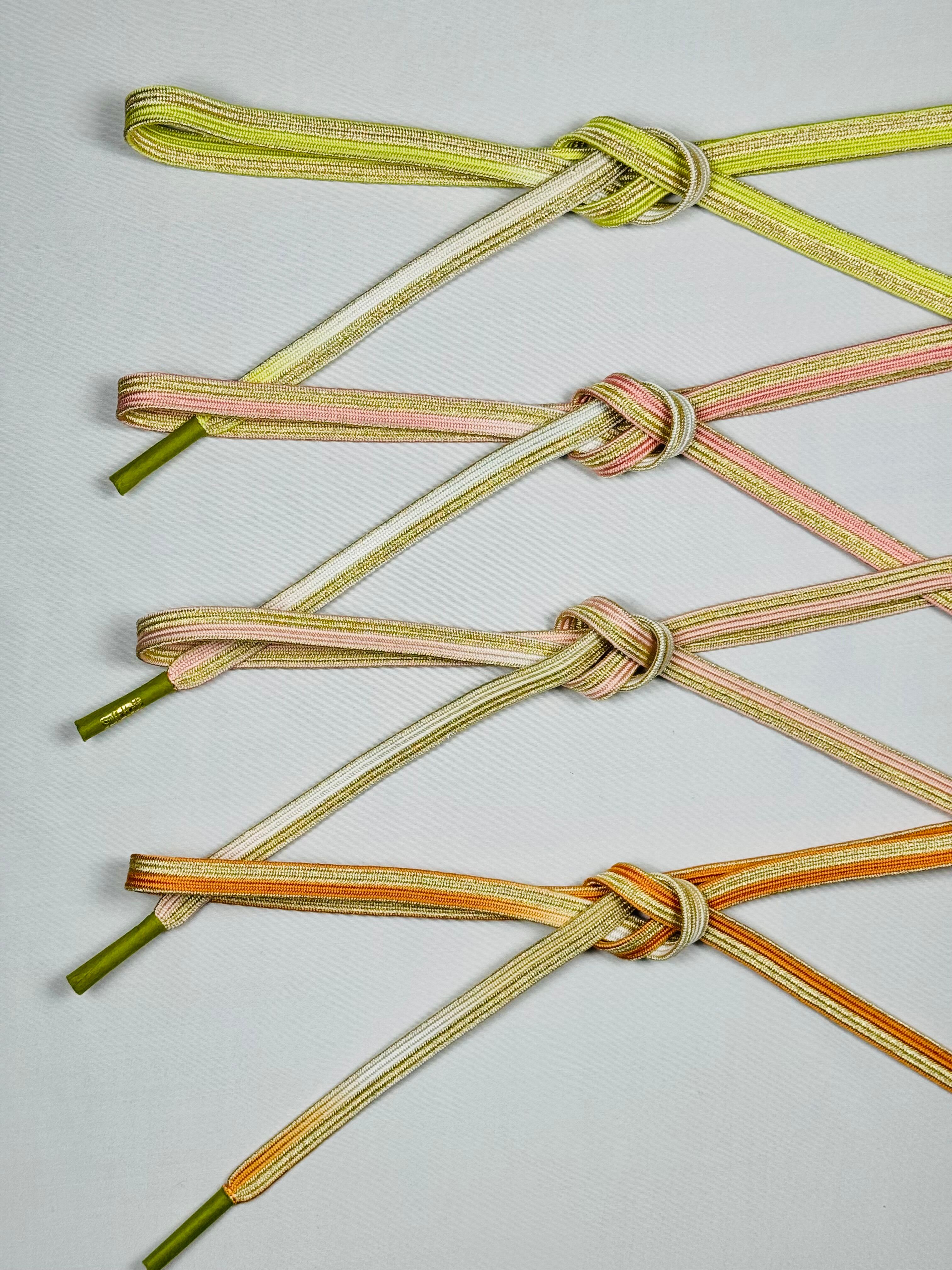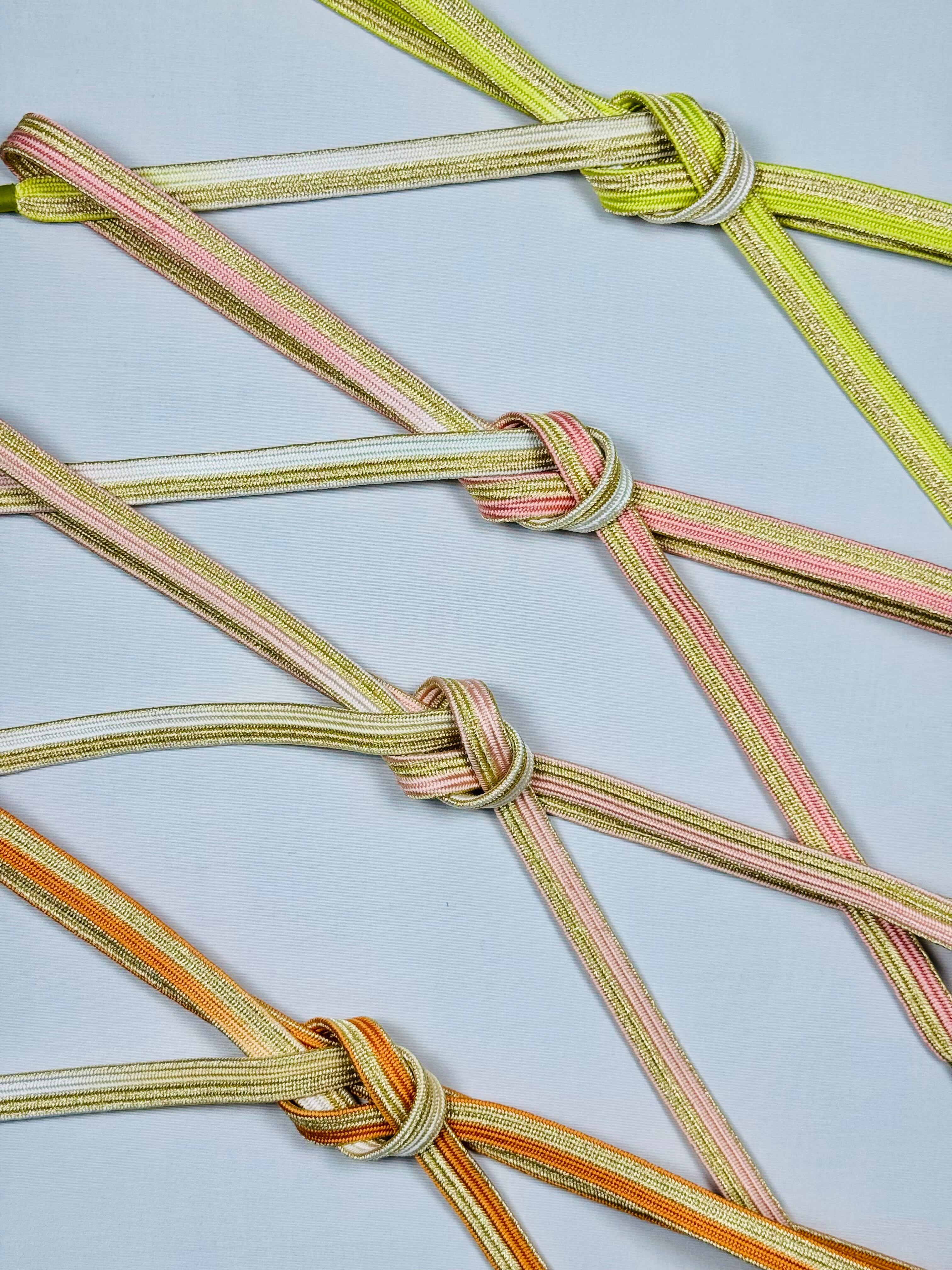格調高い訪問着には、ぼかし染めの色合いと金色のコンビネーション柄の帯じめがおすすめです。コーディネートに華やかさと優しさを演出し、はれの日の装いを、より一層華やかに引き立ててくれます。 お好みのベルトをしてコーディネート全体を整えるように、訪問着に合わせやすいコンビカラーのバリエーションは全4色。お気に入りの振袖にぴったりのカラーをお選びいただけます。 「美しいキモノ」春号 沢口靖子さんの美しい着こなしです。 手組み 日本製 絹100%(金属糸を除く) サイズ:約1.8cm×約160cm